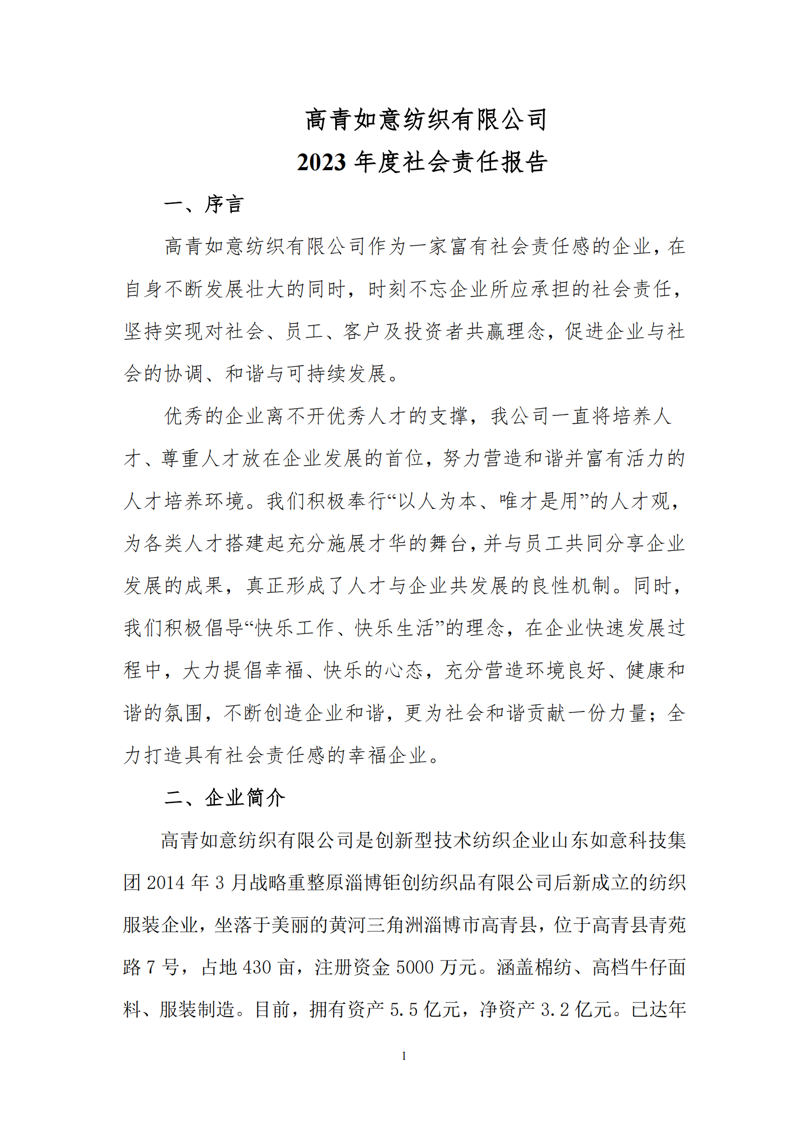 高青如意纺织有限公司 2023 年度社会责任报告